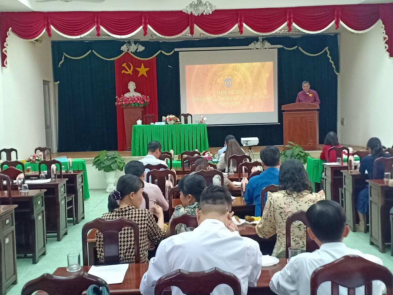 Đến đến dự Hội nghị gồm có: Đồng chí Hồ Văn Gia - Bí Thư Đảng ủy - Giám đốc Sở Tư pháp dự và chủ trì Hội nghị; đồng chí Nguyễn Thị Phương Thu - Chủ tịch Công đoàn cùng 72 đoàn viên Công đoàn tham dự Hội nghị.
