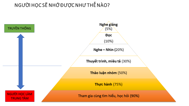 Qua đó cho thấy, người học sẽ nhớ như thế nào? Và chúng ta áp dụng cho đại biểu tham dự các phương pháp là: Vừa đọc văn bản, vừa nghe - nhìn, vừa tham gia cùng tìm hiểu, học hỏi thì sẽ nhớ nhiều nội dung hơn khi nghe Báo cáo viên triển khai pháp luật.